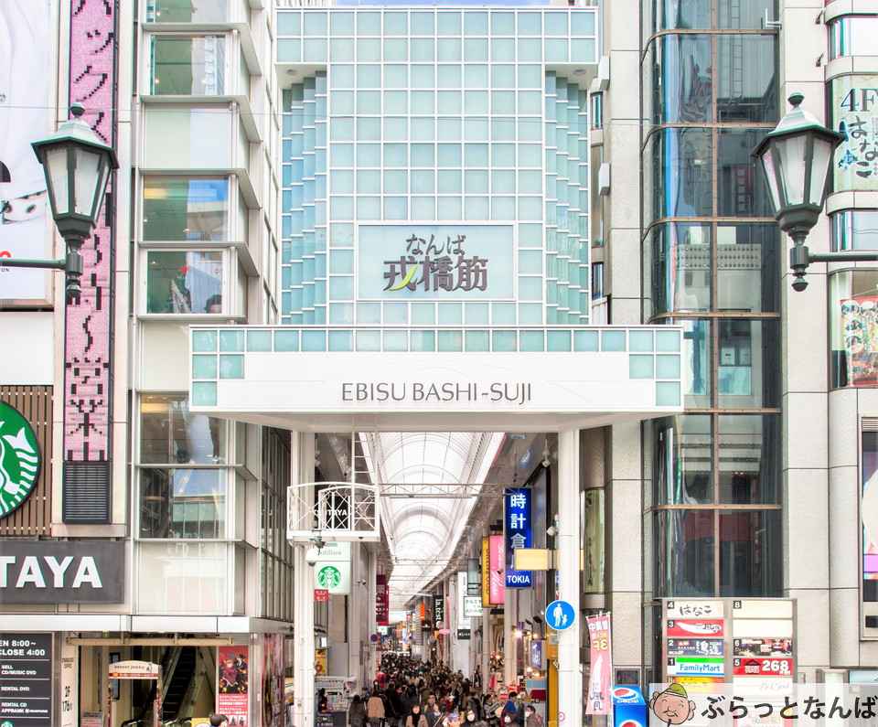 場所は、髙島屋大阪店やなんばマルイからTSUTAYA EBISUBSHIまでの間にある約100店舗の商店街です。