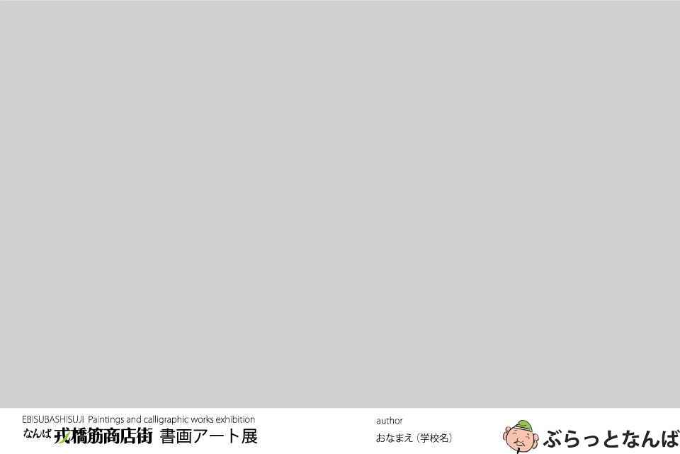 書と絵で描いた 「書画アート作品」 を巨大バナーにプリント し戎橋筋商店街のアーケードをまるごとギャラリーに見立 てて展示します。 戎橋筋は400年の歴史をもつなんばのメインストリート。なんば広場と道頓堀を結び、日々多くの人 が行き交うこの場所で、あなたの作品がまちを彩ります。 自分の言葉や表現を社会に向けて発信する、貴重な経験になるはずです。