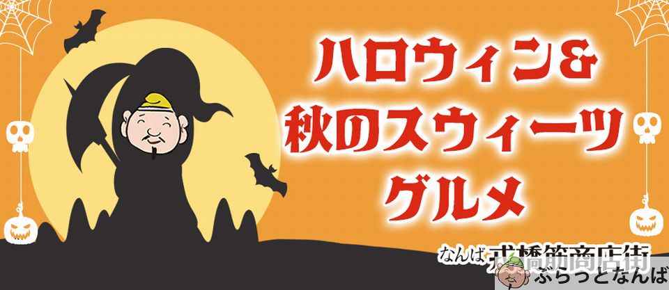 10月31日はハロウィン。戎橋筋商店街ならではの、個性的で楽しいハロウィン・アイテムを一挙ご紹介!ファッション・スイーツ・グルメと多彩ですよ。ハロウィン気分を味わいに、秋の美味しいものを探しに、ぜひ戎橋筋商店街にお越しください!