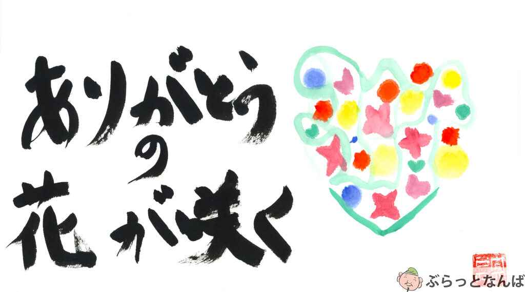 作品趣旨:「ありがとうの花」という歌の歌詞からこの言葉を取りました。普段関わってくださる方々への感謝の重いを考えながら書きました。