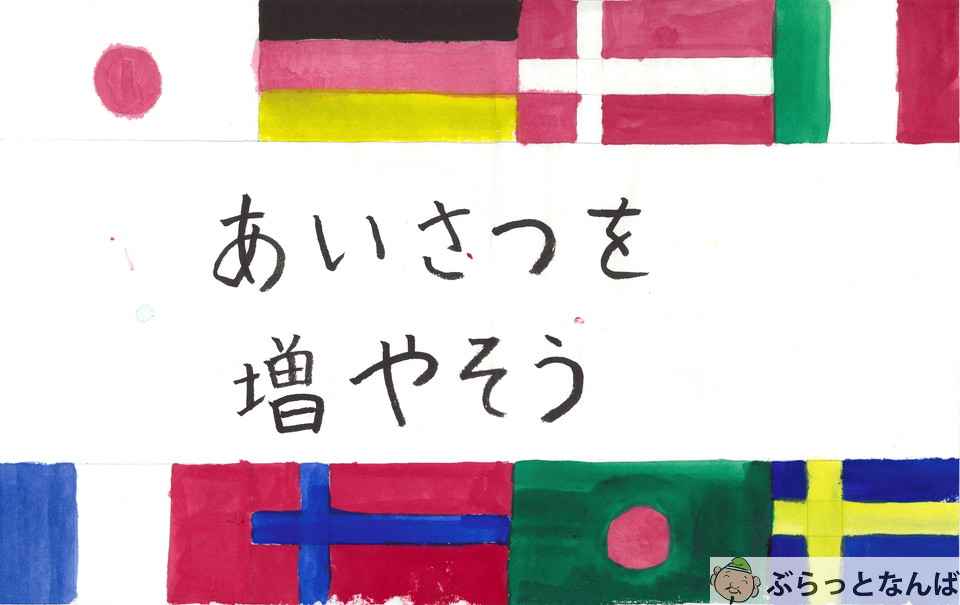 作品趣旨:現代はグローバルな世の中なので国内にとどまらず世界中で国境を越えて色々な言語で挨拶を増やそうという気持ちを込めてこの言葉を選びました。ポイントは明るい色をたくさん使って明るい印象をたくさんつけられるようにしました。