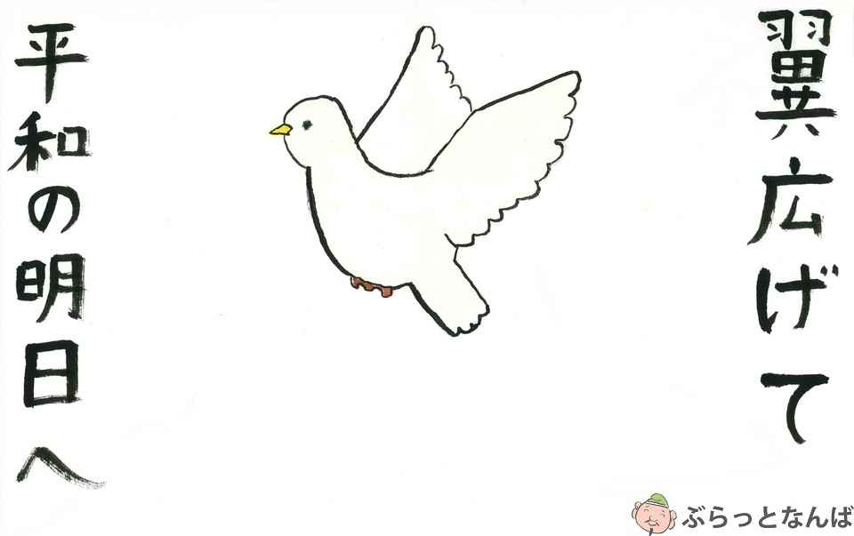 作品趣旨:様々な場所での戦争や紛争や不景気、移民問題などに悩まされるに日々が続いているのでこんな時こそみんなで平和を実現するべきなのではないかという思いを込めて作品を作りました。平和の象徴である鳩をイラストとして入れました。