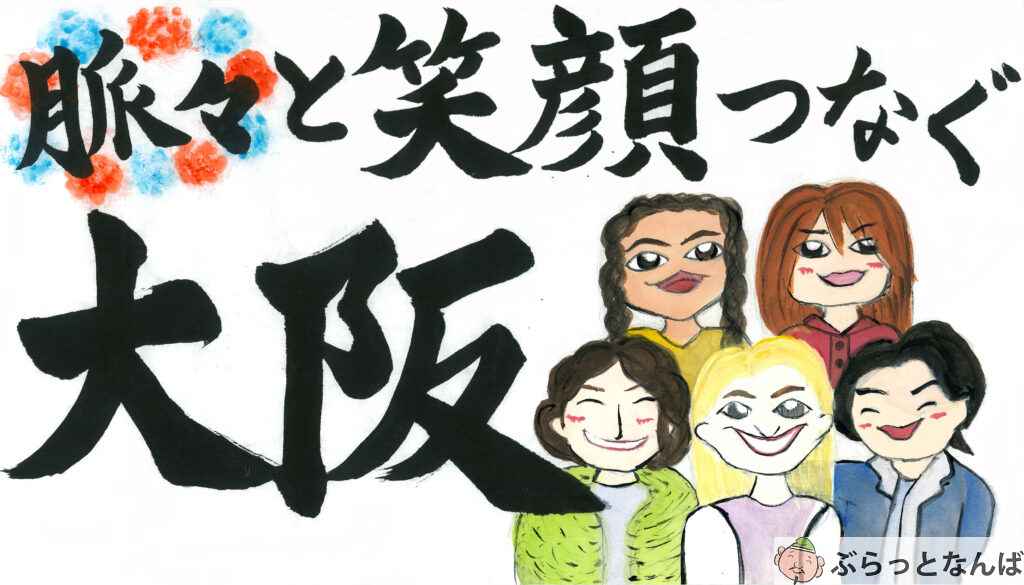 作品趣旨:国や文化のちがいを超えて、みんなが笑顔でつながってほしいという思いを「脈々」という言葉で表現しました。多様な人々の笑顔を描き、大阪からあたたかいつながりが広がる未来を願っています。