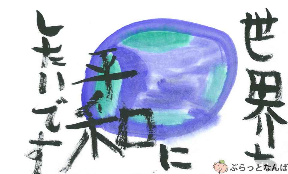 作品趣旨:世界を平和にしたいです。 理由は世界に事件がおきないように平和にしたいからです。