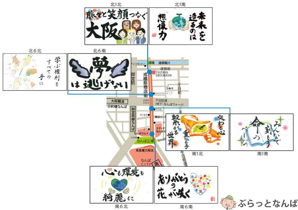 若者の自由な発想の書画作品を、たくさんの方に見ていただける、なんばのど真ん中のアーケードに展示するこの試み。次回の開催は2026年度を予定しています。募集要領はあらためてお知らせします。高校生やその世代のみなさん、ご応募お待ちしています!