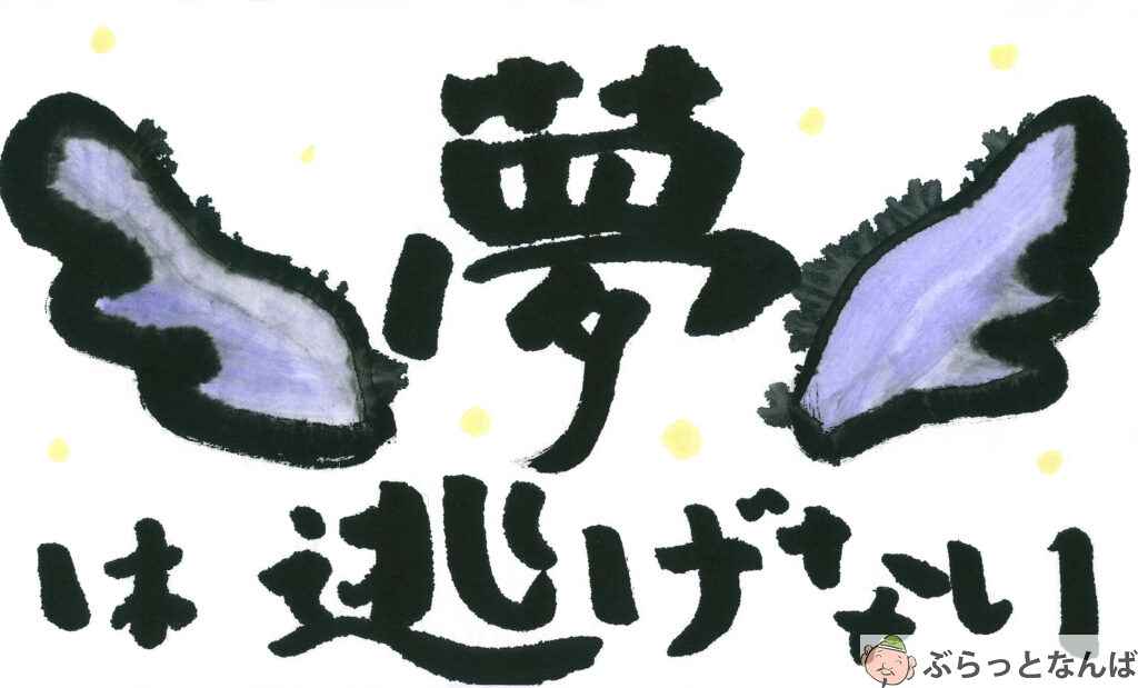 講評:一目で視線を引き付けるインパクト、響いてくる力強さがあります。夢は逃げないというユニークな表現ですが、未来へと向かているという意志を込められています。