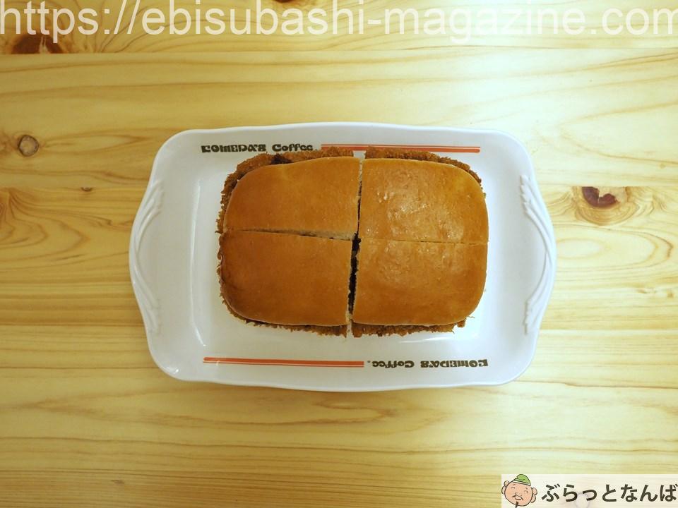 コメダ珈琲店 道頓堀店のフードメニューは、基本的には他店と同じですが、カツパンは他店では3カットのところ、道頓堀店では4カットにカットされています。