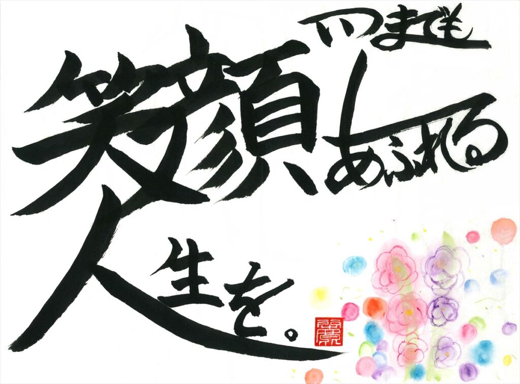 作品趣旨:笑顔あふれる花束みたいな人生を歩んでほしいという気持ちを込めて、イラストを華やかに描きました。