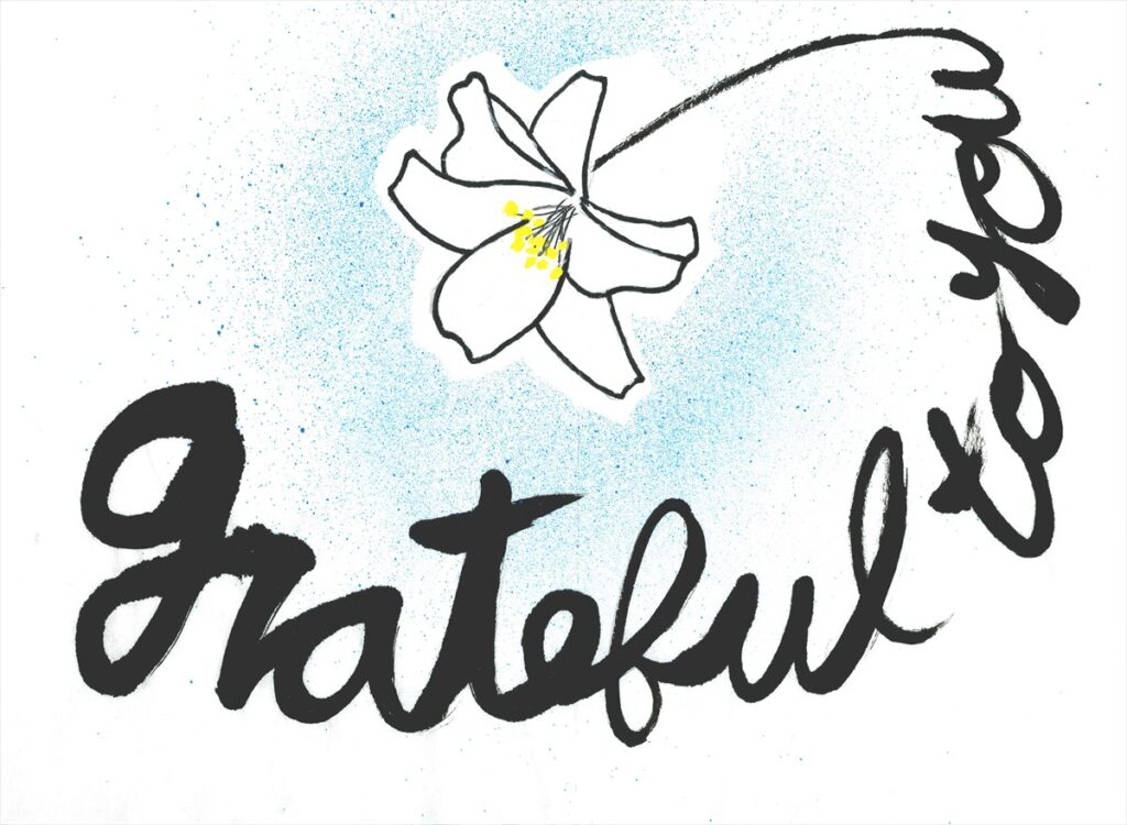 講評:花の描き方がかっこよく、とてもシンプルできれいな作品です。Gratefulの言葉と百合の花が、敬老の日と一般に馴染みがあるとさらによかったです。