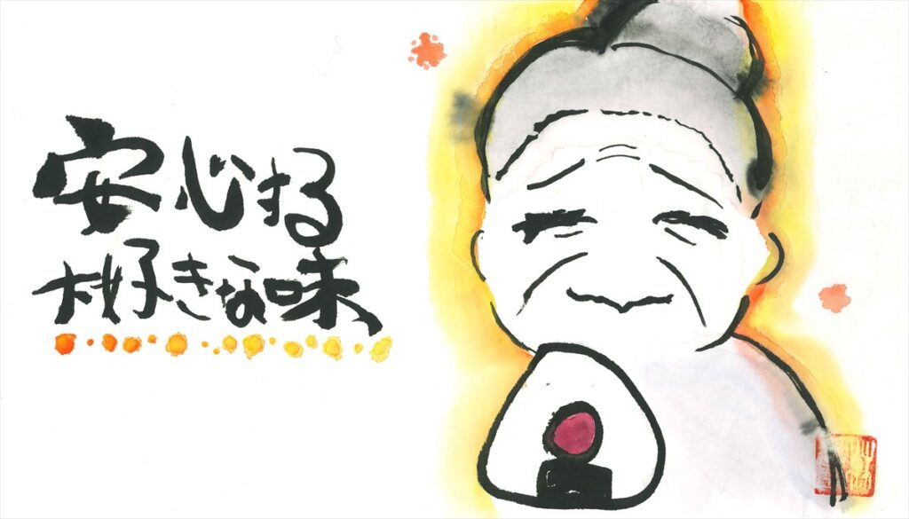 講評:柔らかい表情の、優しいおばあちゃんが表現できています。文字をまとめて余白を生かした構図も上手です。