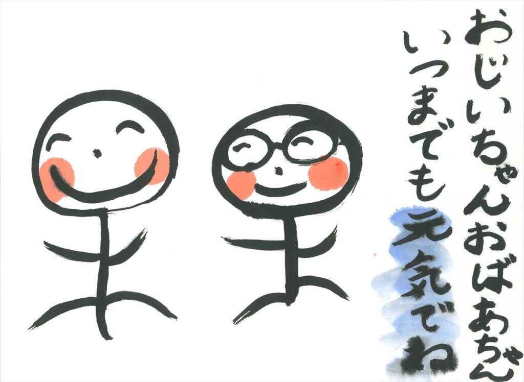 作品趣旨:おばあちゃんとおじいちゃんの笑ってるかおがとても好きなので、ずっと元気で笑顔でいてほしいと思ってかきました。