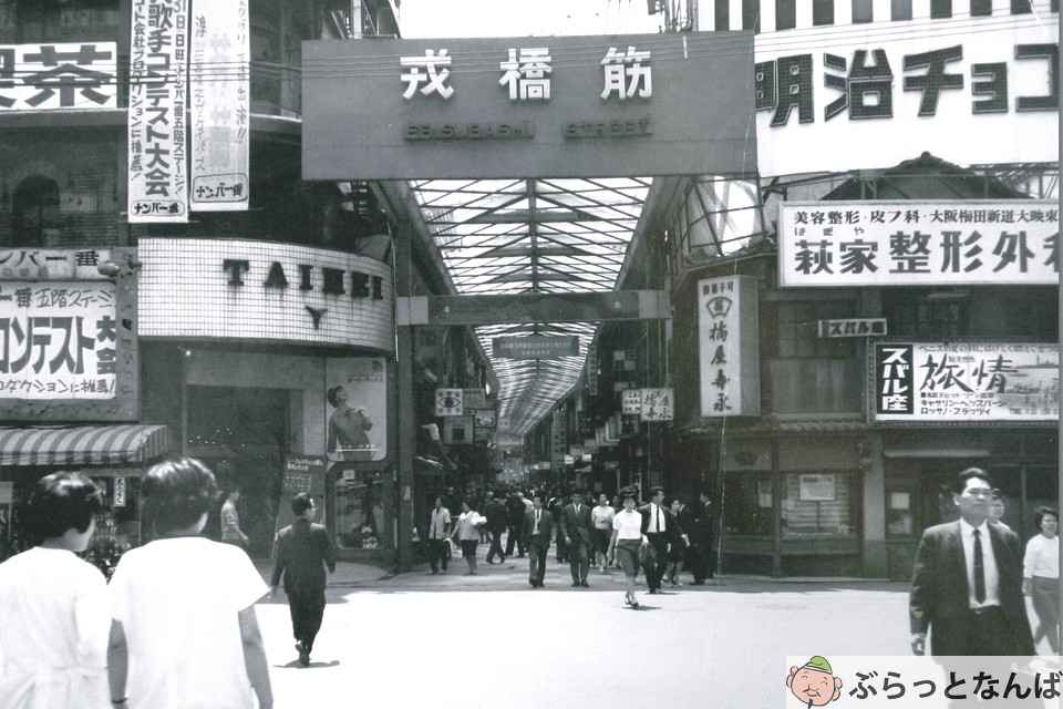 終戦後の立ち直りは早く、やがて復興から高度経済成長へ。1957(昭和32)年には、難波駅前に大阪初の地下街としてナンバ地下センターが開業し、1962(昭和37)年には戎橋筋商店街にもアーケードが設置されました。