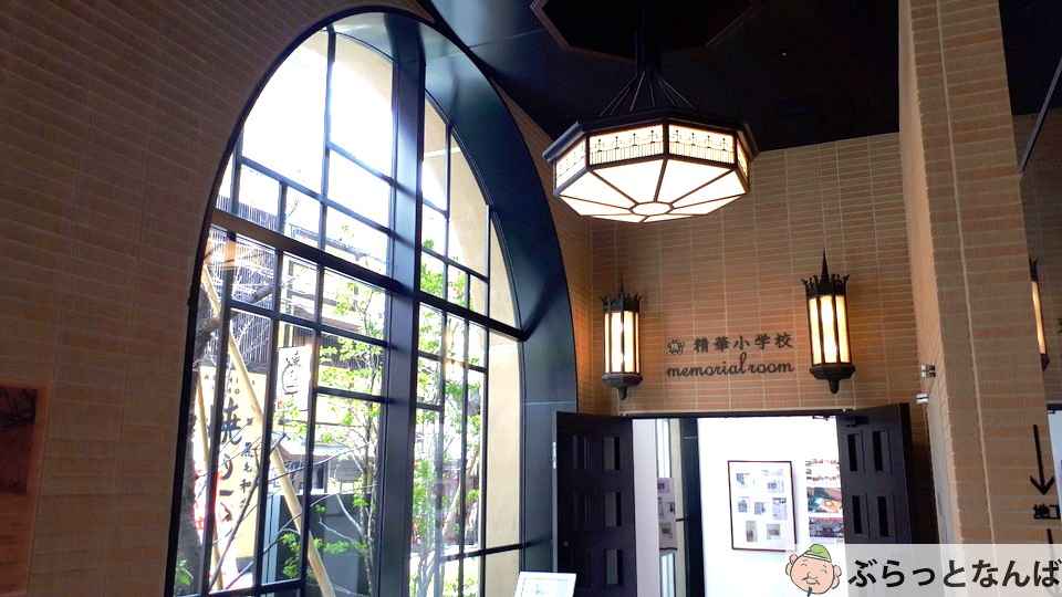 商店街に面して校門のあった精華小学校には、藤山寛美さんをはじめ芸能人や商店街の商人たちも多く通っていました。しかしこの年、65年の歴史に幕を閉じます。一時は精華小劇場として活用され、現在はエディオンなんば店が出店しています。施設の東側に精華小学校メモリアルホールがあります。