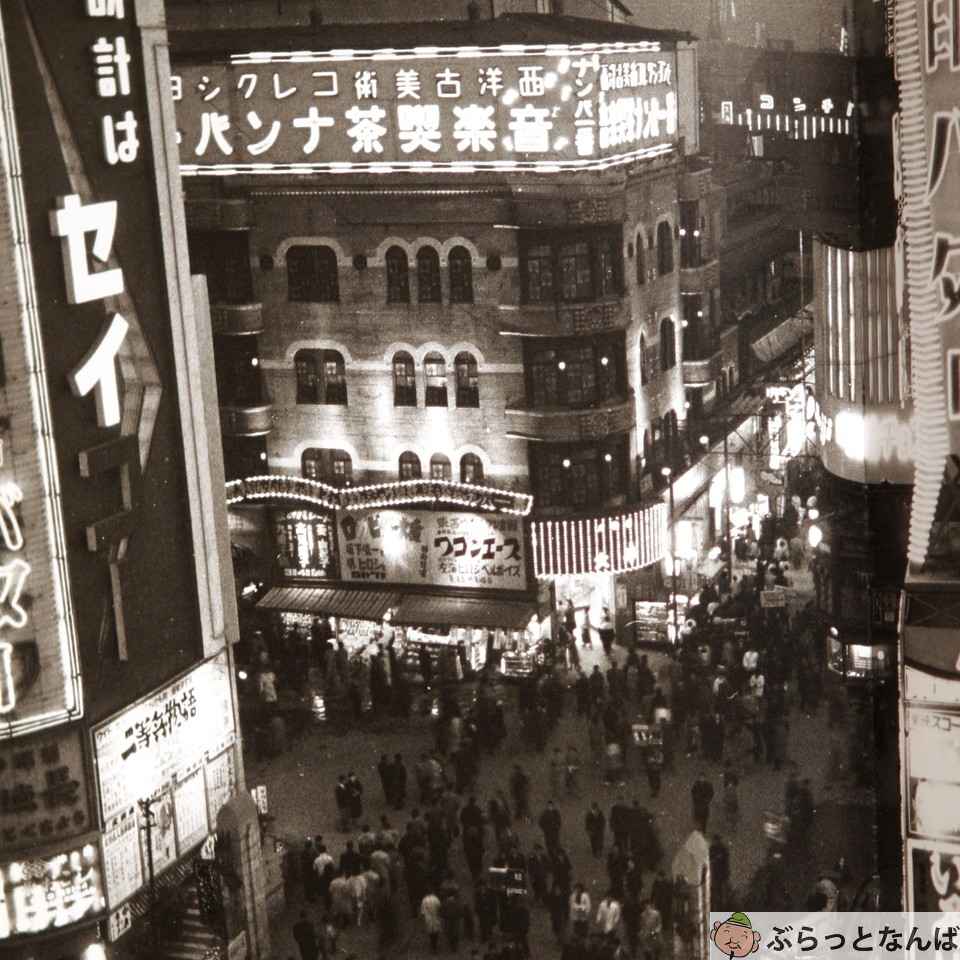 終戦後の立ち直りは早く、やがて復興から高度経済成長へ。1957(昭和32)年には、難波駅前に大阪初の地下街としてナンバ地下センターが開業し、1962(昭和37)年には戎橋筋商店街にもアーケードが設置されました。