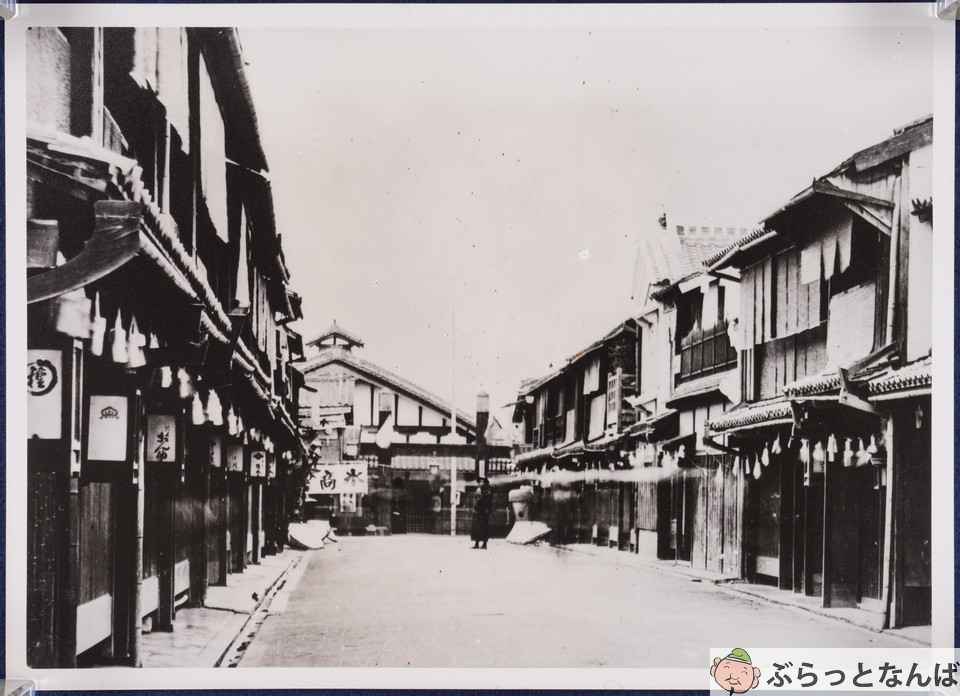 花街が最盛期だった昭和初めにはミナミに芸妓2800名程が在籍していましたから、京都・祇園をしのぐ華やぎであったでしょう。宗右衛門町は中でも格式が高く、お茶屋から後に高級料亭となった「大和屋」では、下足番が立ち、能舞台が置かれました。