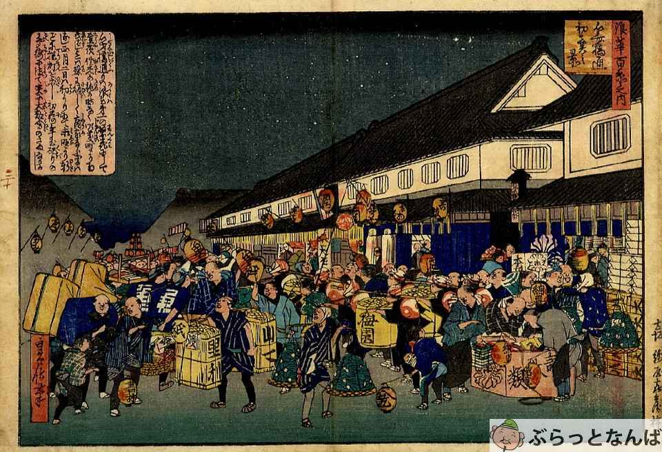 見世物小屋や勧進相撲を誘致したり、夕涼みの名所として衆目を集めながら、幕末にかけて現在の南海難波駅手前までが徐々に市街化されていきました。その難波新地の目ぬき通りとして発展したのが戎橋筋商店街(えびすばしすじしょうてんがい)です。