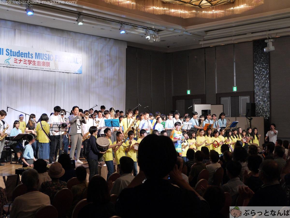 フィナーレでは出演校数校とプロミュージシャンが一緒に舞台に上がり、大人数で演奏します。