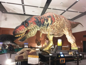 足元にはトリケラトプスを食べる姿も復元されていて、当時の食物連鎖についてもパネル付きで学ぶことができます。