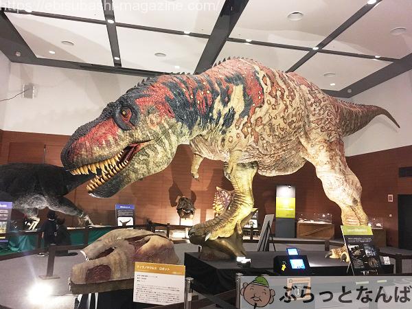 「大恐竜展inなんば」では、ティラノサウルスの実物大ロボットをはじめ、貴重な復元骨格なども展示されており、家族でもカップルでも、もちろんひとりでも楽しめる展覧会になっています。