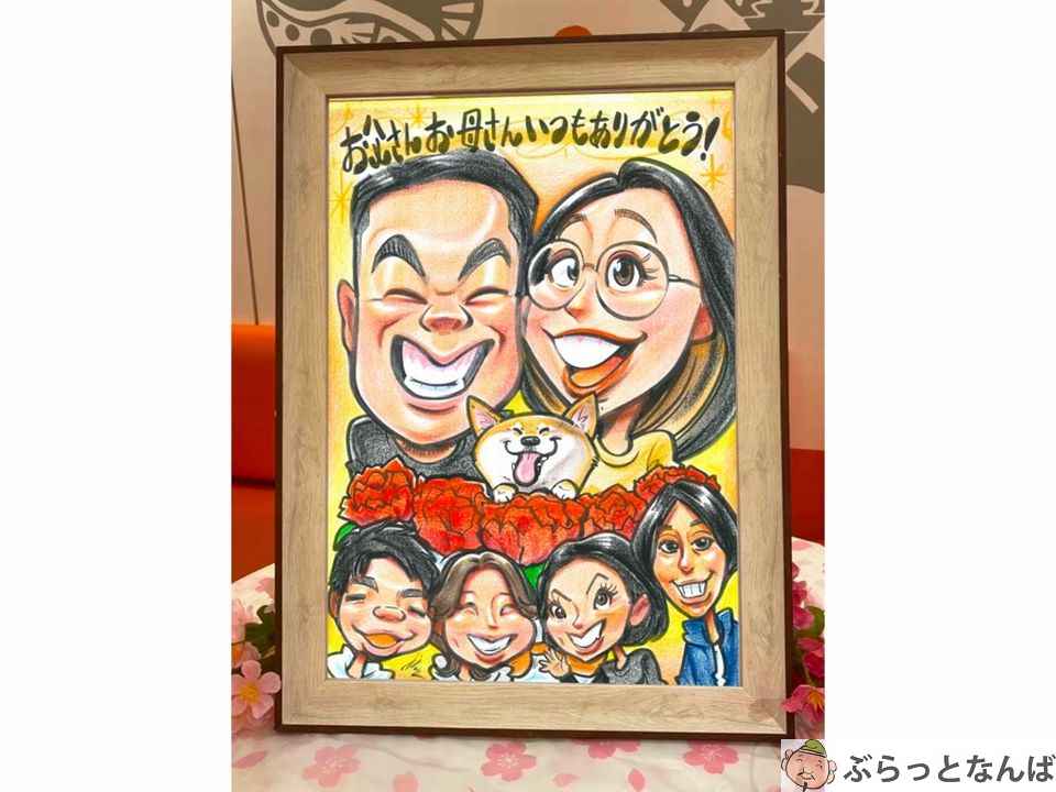 お母さんの写真をお店に持参するだけで、ユニークな似顔絵を描いてくれます(スマホデータでもOK)。