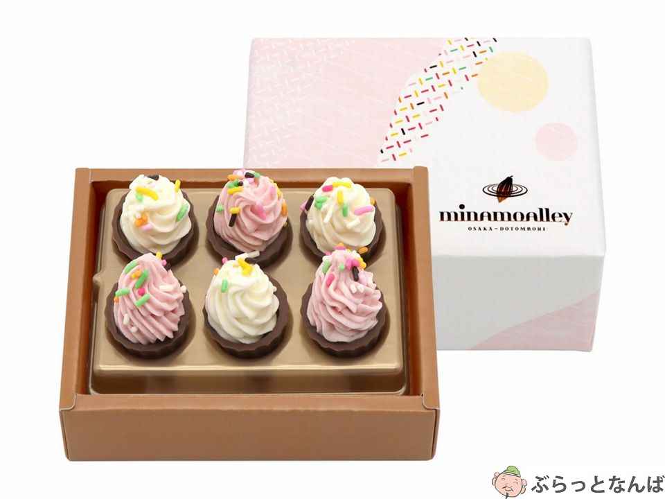 香ばしい味わいのジャンドゥヤが詰まったミルクチョココーンは可愛らしいおつまみサイズ。ストロベリー3個、ホワイト3個入り。