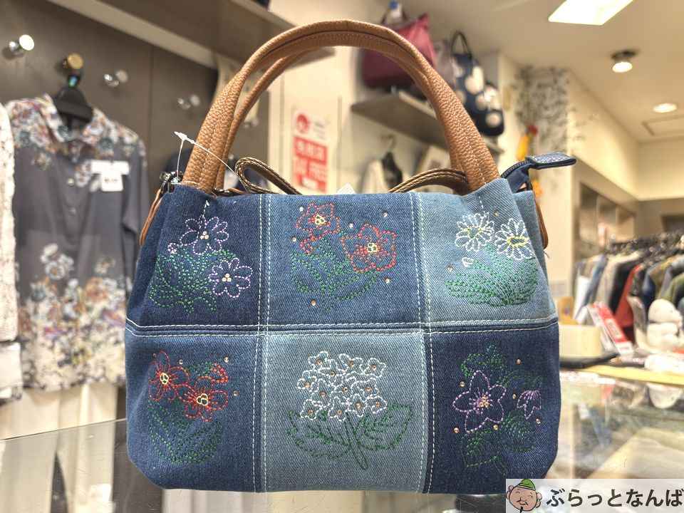 お散歩が楽しくなりそうな、アジサイなどが刺繡されたデニム生地のバッグです。 付属のベルトでショルダーバッグとしても使えます。
