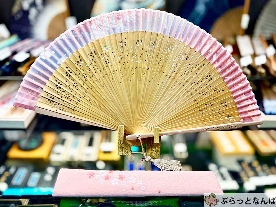 桜が舞う瞬間の美しさを表現した扇面に、桜の透かし彫りを施した扇骨を組み合わせた一本。やわらかなピンクのグラデーションが美しく、華やかな印象に仕上がっています。