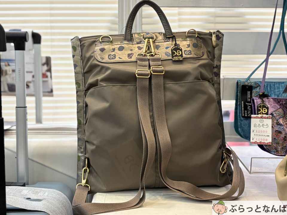 一つひとつ凝ったデザインのバッグが、壁一面に並ぶ種類豊富な商品は圧巻。あれもこれも、と目移りしてしまいます。これらすべてが日本製なのも、うれしいポイント。