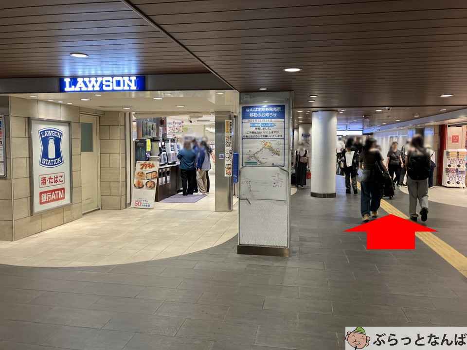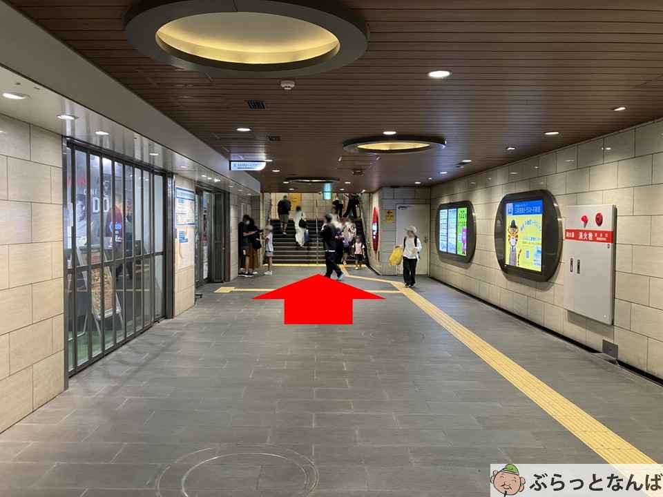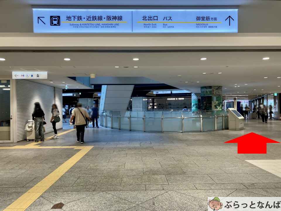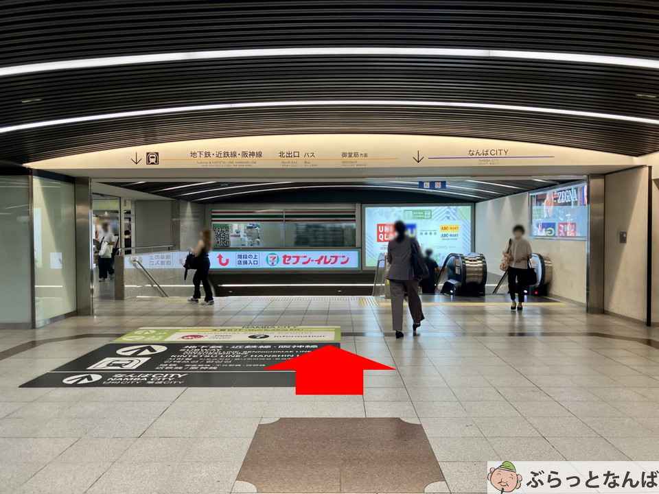 大阪メトロ御堂筋線のなんば駅には5か所の出入り口があり、今回は北東改札口を出ます。