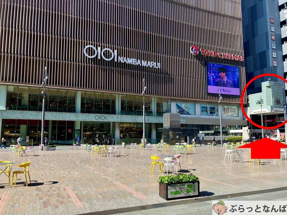 外に出ると、目の前にはなんば広場があり、TOHOシネマズなんばとなんばマルイが入ったビルが見えます。