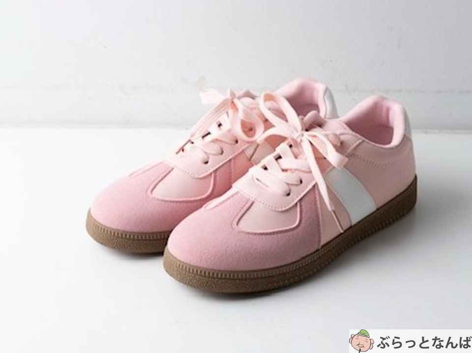 「サイドラインスニーカー(304-1655)[530A]」は、くすみピンク×白のサイドラインでトレンド感を。シンプルなデザインなので、どんなコーデにも合わせやすく、幅広く活躍します。