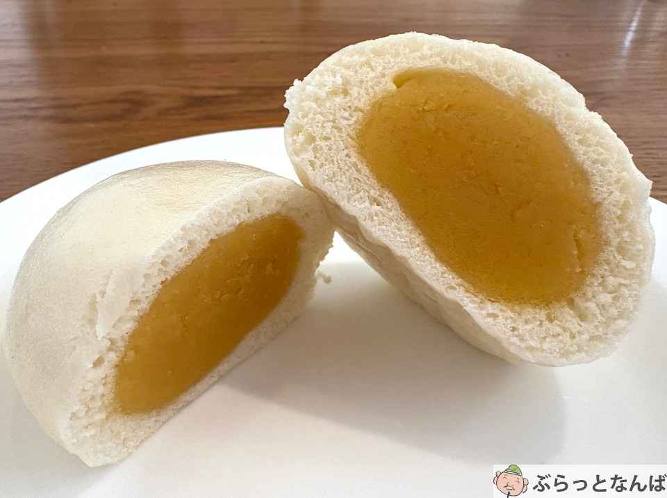 ふわふわの生地の中には、甘さ控えめのカスタード入り。どこか懐かしく、一度食べるとついまた食べたくなる味です。小腹が空いたときにぴったりの、うれしいサイズ感です。
