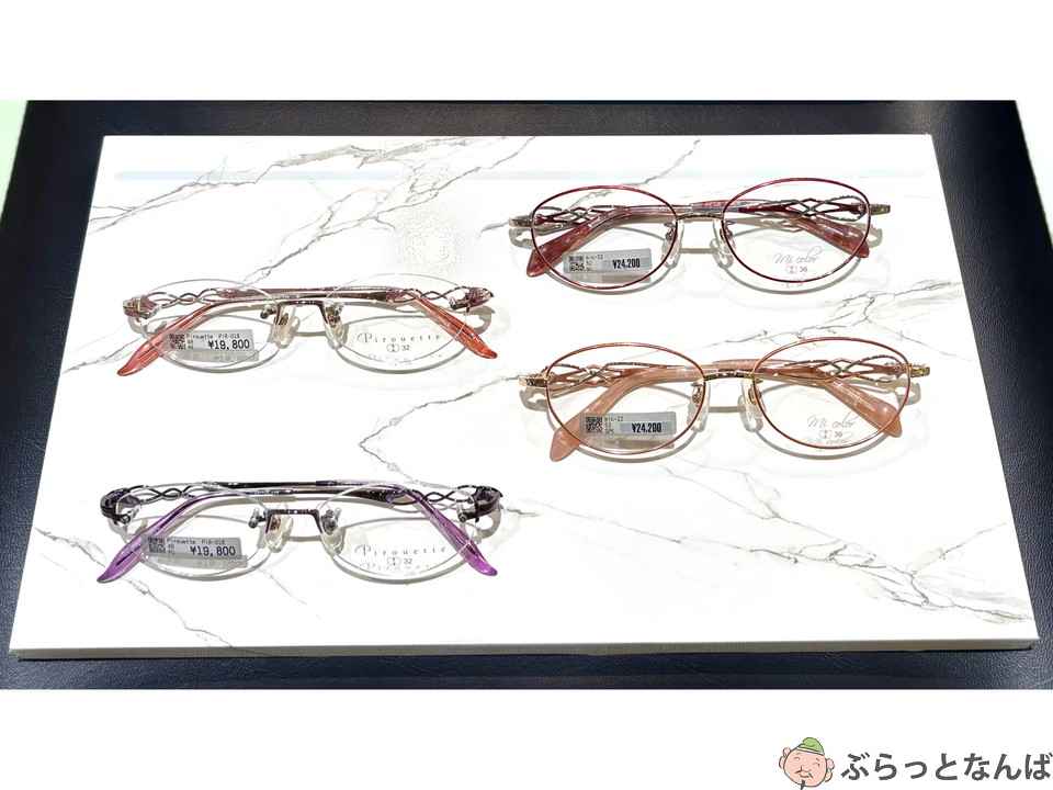 女性用のおすすめブランドは、鯖江製のエレガントなデザインの「Pirouette(ピルエット)」。こちらもフレームレスモデルが人気です。もう一つは華やかで豊富なカラーバリエーションが魅力の「mi color(ミコロール)」。長時間着用しても疲れにくいので、普段使いに最適です。