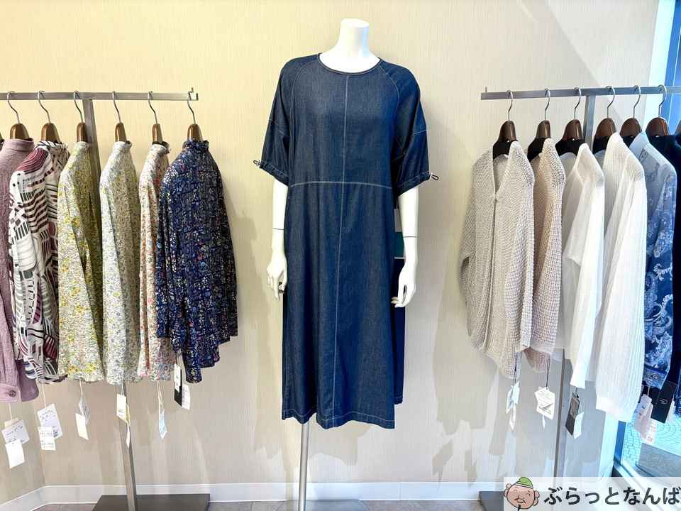 軽やかでサラッと着られるデニムワンピース。1枚でスタイリングが決まる優秀アイテムです。体型もカバーしてくれます。配色ステッチがアクセントになり、デザイン性の高い仕上がりに。袖には紐が付いており、お好みで絞り具合を調整可能です。