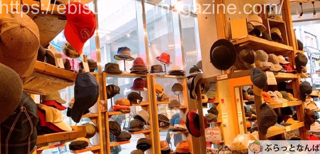 なんばの中心に位置する戎橋筋(えびすばしすじ)商店街には、帽子専門店「SHOP無」が2店舗あります。