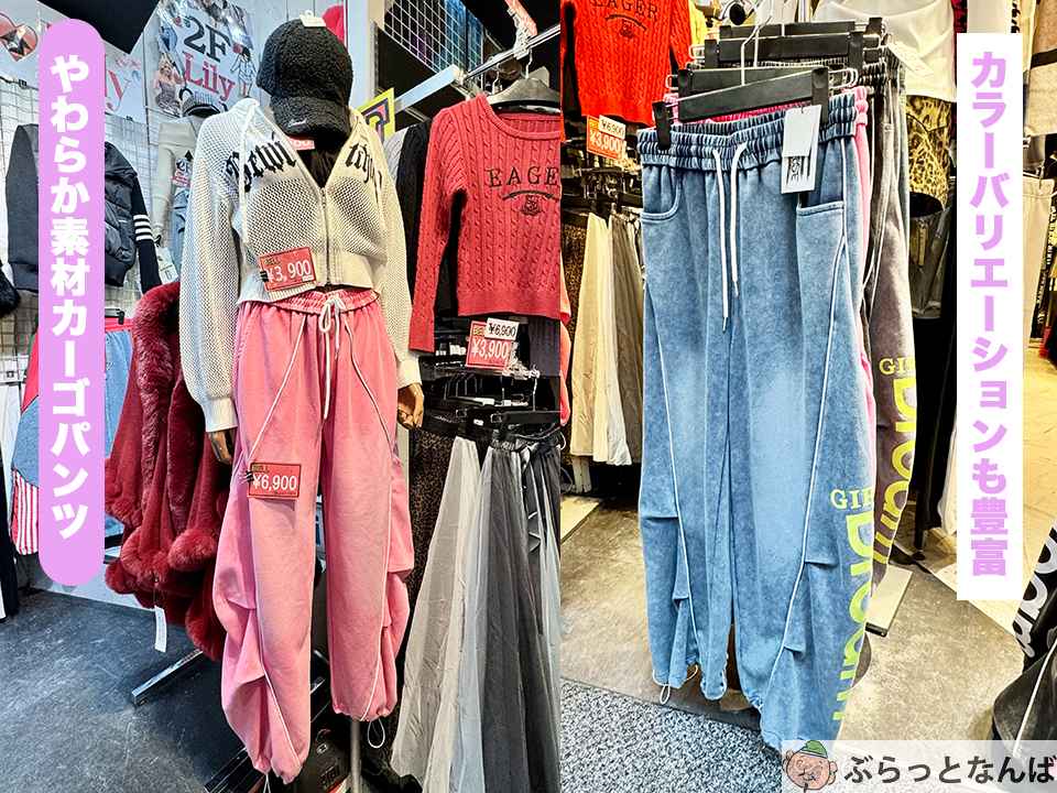 やわらか素材のカーゴパンツ(通称:ダボパン)/ブルー・ピンク・黒・グレー