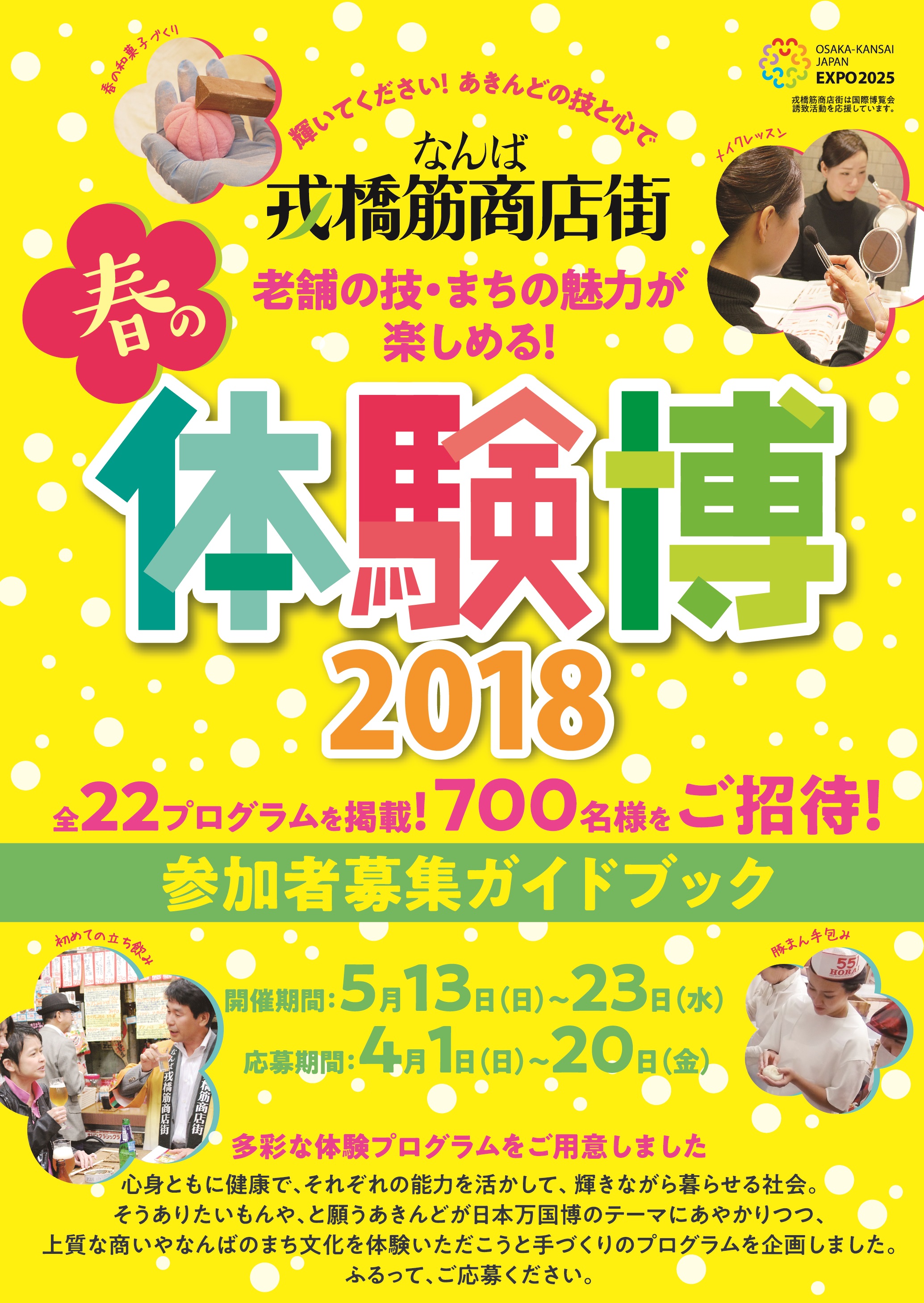 大阪なんばにある戎橋筋(えびすばしすじ)商店街では、長い商店街の歴史のなかで培われた技術や文化を楽しめる「体験博」というイベントを毎年春と秋に開催しています。