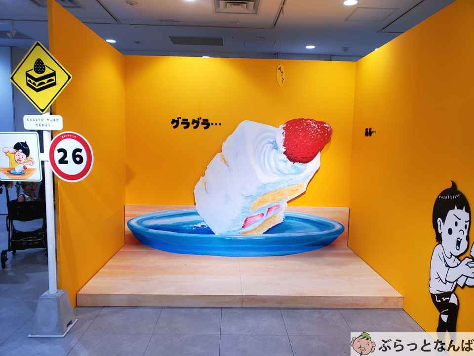 「みるピンチ」では、倒れそうな誕生日ケーキ、こぼれた牛乳、溶けそうなアイスなどが巨大スケールで登場。絵としてのおもしろさを感じるとともに、こちらは映えるフォトスポットにも。「うわ、やばい!」と声をあげ、ピンチな顔をしながら写真を撮られる子どもたちの姿に、思わずクスッと笑ってしまいます。