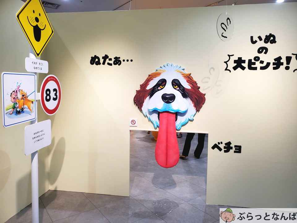 犬のベロベロ攻撃にあってヨダレまみれになってしまう「イヌがすごくなめてくるピンチ」は、ざらざらとした犬の舌の感触がリアル。うっかり動物のフンを踏んでしまった場面を再現した「フンをふんだ」では、そこに散らばるフンの見た目もわりとリアルなので、大ピンチ感がより伝わってきます。