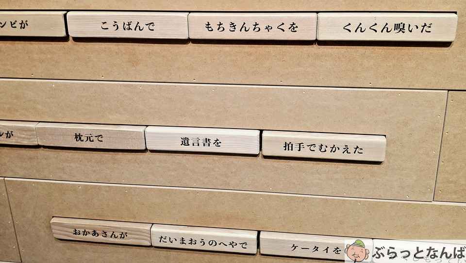 大人には「だれが・どこで・なにを・どうした」の4種類の言葉を組み合わせて、偶然生まれるピンチを笑い飛ばす「大ピンチバー」がおすすめ!壁に飾られたありえない言葉の組み合わせが楽しくて、じっくり眺めていたくなります。