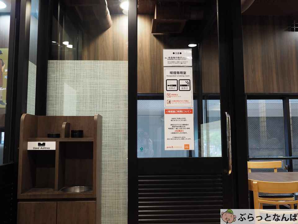 喫煙ブースが設置されていて、アイコスなどの電子タバコの場合は20席の区画スペースで飲食しながらの喫煙が可能。